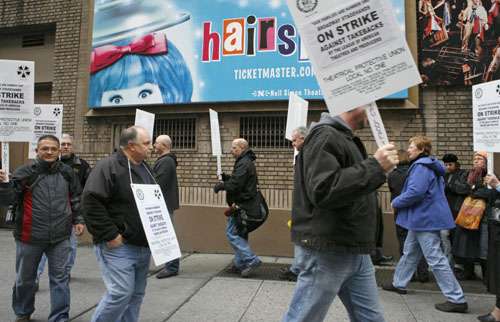 報道稱,這些負責舞臺布景和儀器的舞臺人員在劇院前設(shè)置了糾察線。經(jīng)過三個月談判后,戲劇制片人和舞臺人員工會沒法就工資和工作條件達成共識,于是舞臺人員決定采取工業(yè)行動。