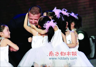 日前,貝克漢姆在北京參加錄制湖南衛(wèi)視《快樂大本營》中國獨家球迷見面會特別節(jié)目。現(xiàn)場要送給貝克漢姆一份大禮,只見10個穿著白裙子的小女孩魚貫而入,這些看上去只有四五歲大的小姑娘一個個都雪白粉嫩、可愛得如同小公主,小貝愣在那兒,猜不出禮物是什么。何炅揭曉謎底了:“小貝和維多利亞一直想生個女兒,今天來了這么多小女孩,就當給小貝沾點喜氣吧。”貝克漢姆聽完翻譯的解釋非常高興,蹲下身子摟著小女孩一個個親過來,非常溫柔。