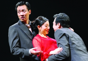 當(dāng)年,張愛玲的同名小說被關(guān)錦鵬拍成了有些壓抑的文藝片。如今的話劇舞臺上,振保辛柏青、高虎,紅玫瑰秦海璐,白玫瑰胡靜釩用幽默的臺詞和肢體表演,令觀眾感受到喜劇色彩。比如,振保在猶豫著要不要去勾引紅玫瑰時,內(nèi)心掙扎著,辛柏青說:“我要是去了,她會覺得我不是個上等男人。”高虎卻說:“你要是不去,她會覺得你不是個男人!”劇中有的橋段,甚至調(diào)侃起張愛玲來。白玫瑰拿著一本書說:“‘到男人心里去的路通過胃,到女人心里去的路通過陰道’,這是張愛玲說的!”更絕的是,張愛玲小說中的文字竟成了劇中振保與紅玫瑰在9年之后再次見面的“串詞”。