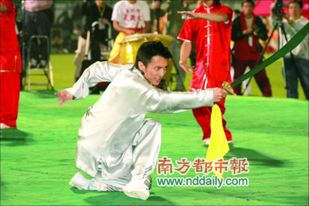 1月21日晚,約6000名香港青年學生聚會九龍旺角大球場,一同見證“全民健身迎奧運——慶祝北京奧運倒數計時200日”活動的舉行,謝霆鋒以帶領員的身份參加活動,并當場表演武術。