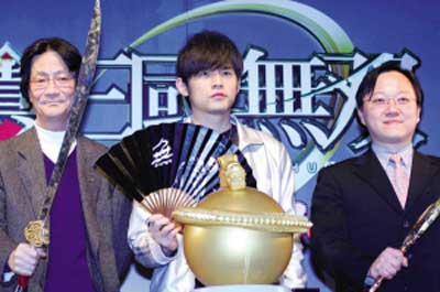 周杰倫現場和網友一起“搏殺”游戲,顯得輕車熟路,有記者問周董是否看過《三國演義》,最希望其中哪個人物時,周杰倫居然說自己最喜歡小喬,因為是美女。周杰倫的《大灌籃》日前票房過億舉行慶功宴,上海著名的高校復旦大學則更給面子,聘請他擔任藝術指導,周杰倫說,“給學生上課是很有意思的事情,可以有很多互動,不過很久都沒有回校園了,會緊張。”他更表示要向自己的母親葉惠美學習怎樣當好老師,因為他媽媽就是職業教師。(特派記者 盧圓媛)