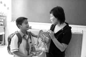 據了解,范彬彬當時所在的學校面臨垮塌,是班主任老師帶領全班同學跑到了山上,避過了危險。由于父母都在重慶打工,他也被接到了重慶,當地相關方面則把他安置在重慶江北區鯉魚池小學,學校領導和老師無論在生活和學習上都給了他無微不至的關懷。