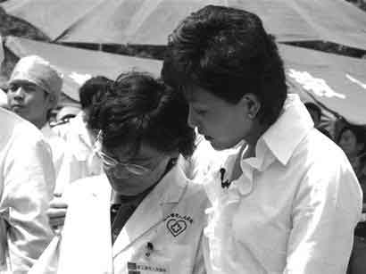 今天,我們“母愛在行動”特別行動小組抵達重災區德陽綿竹市。我和全國婦聯副主席書記處書記莫文秀、鄧婕、蔣勤勤、佟梅、心理專家金韻蓉等行動小組的成員一起,在受災群眾集中的綿竹南廣場探望了部分受災兒童和孕產婦。