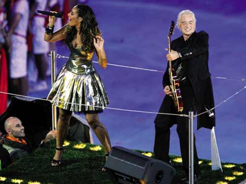 那個(gè)幫麗安娜伴奏的老吉他手是誰(shuí)?此人在英國(guó)恐怕無(wú)人不曉。他便是英國(guó)王牌重金屬樂(lè)隊(duì)“齊柏林飛艇”(Led Zepplin)的吉他手吉米·佩奇(Jimmy Page)。該樂(lè)隊(duì)成立于1968年,是上世紀(jì)70年代世界最流行的搖滾樂(lè)隊(duì)之一。他們的貢獻(xiàn)在于在英國(guó)傳統(tǒng)搖滾中融入了藍(lán)調(diào)、鄉(xiāng)村搖滾、靈歌甚至中東、印度和拉丁音樂(lè)的元素,對(duì)現(xiàn)代搖滾有著不可估量的影響。但是,在1980年鼓手約翰·邦納姆(John Bonham)不幸猝死之后,“齊柏林飛艇”宣告解散。直到去年,樂(lè)隊(duì)才重組巡演。雖然樂(lè)隊(duì)成員如今大多年過(guò)六十,但當(dāng)時(shí),一張門票就被炒到不可思議的8萬(wàn)英鎊。(李麗)