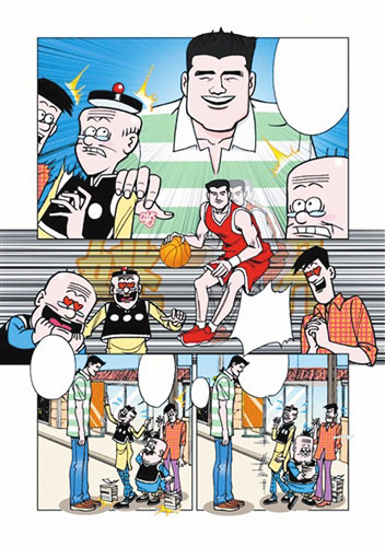 籃球巨星姚明第一次授權開發的長篇漫畫作品《姚明與老夫子》,即將于12月15日在動漫雜志上連載。昨日,本報獨家拿到了這部漫畫的最終成品稿,姚明與老夫子搭檔的漫畫形象格外幽默,而姚明憨態可掬的樣子與《功夫熊貓》中的熊貓阿寶頗為神似。這部漫畫的創作者更向記者透露,因為很喜歡老夫子的形象,姚明此次欽點老夫子與自己在漫畫中搭檔。