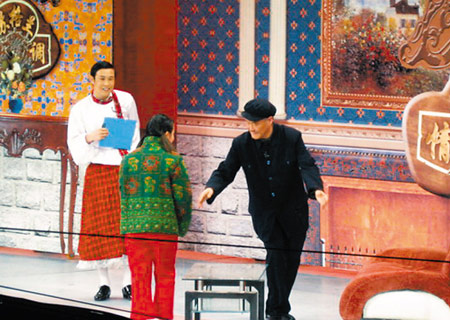 前日下午,春晚在中央電視臺演播廳進行了第二次彩排,趙本山的新小品《不差錢》終于亮相。經歷了小品一稿的“自斃”后,趙本山完全拋棄了“黑土”路線,布景由農村家庭,改為“鐵嶺市最豪華的飯店”———他將在這里為孫女毛毛上星光大道的事情宴請畢福劍,菜肴是他身上掛著的蔥、蒜,著“蘇格蘭裙裝”的小沈陽做侍應生,故事由此展開。