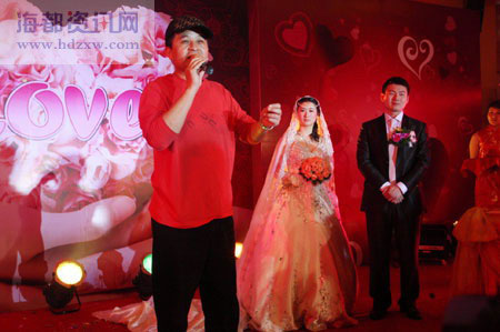 據報道,婚宴現場引發不小騷動的當屬央視主持人畢福劍的出場。當主持人請證婚人畢福劍上臺時,人們紛紛放下酒杯站了起來,努力看清著名主持人。在其他餐廳的客人,通過電視轉播看到這位名人,紛紛跑到主場來看。老畢引起的騷動剛平息不久,鞠萍姐姐的出現又讓客人們興奮了一下。主持人稱,老畢是新郎家人請來的,而鞠萍是新娘家人請來的。鞠萍很親和地客串了一把主持,將一對新人捐贈100萬元建希望小學的事跡講給大家聽。至于兩位央視主持人的勞務費,有知情人士稱“不低于20萬”。