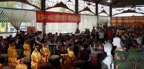 10月3日,來自香港、廈門的40多位歸僑和竹壩華僑農場歸僑職工一起,在竹壩經濟開發區南洋美食廣場聚會聯歡,紀念回國50周年。