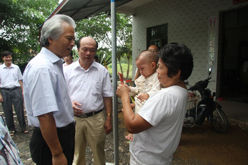 隨后,吳士存一行驅車前往該辦對口聯系的海口石山鎮北鋪村進行走訪慰問。在聽取了該村的村情和災情介紹后,吳士存對該村防汛救災取得的成效表示了高度贊賞,并指出目前關鍵任務是,抓好農作物補救、進水房屋安全、低保困難群眾救助等工作。針對該村的發展情況,吳士存特別指出,北鋪村瀕臨海口中心區,交通較便利,特色經濟作物優勢明顯,休閑農業與旅游資源發展潛力大。吳士存強調,村委干部要明確和理清發展思路,想方設法幫助群眾發展生產,增加收入,提高生活水平;要加大農村衛生環境整治,設立垃圾處理點,使村容村貌煥然一新;要設計富有海南本土特色、既實用又美觀的民居建筑,在全省形成示范和帶動作用;要將休閑旅游與農業有機的結合起來,開發與保護本村的特色旅游資源。