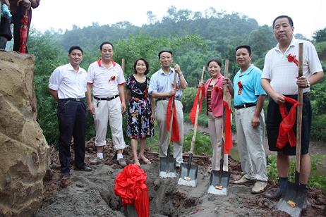四川省僑辦黨組成員、機關黨委書記吳振西(中)為澳門同胞捐建的福壽橋奠基。