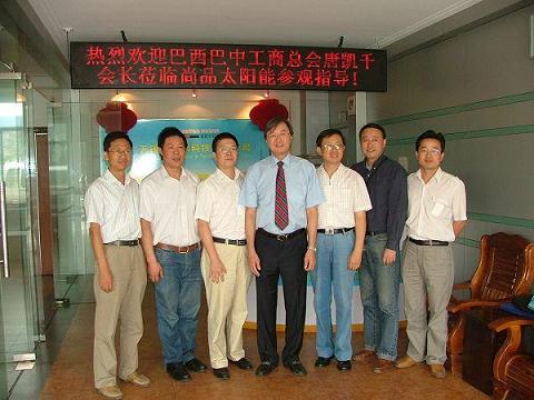 中新網9月16日電 9月9日,巴西巴中工商總會會長唐凱千先生來到無錫,在無錫市僑辦、惠山區僑辦工作人員的陪同下,考察了無錫尚品太陽能電力科技有限公司、江蘇玉龍鋼管股份有限公司,并與公司領導就貿易與合作等事宜進行了洽談。