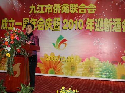 中新網12月31日電 據江西僑聯網消息,12月26日,江西省九江市僑商聯合會成立一周年會慶暨2010年迎新酒會在九江市舉行,九江市僑商會全體會員與各級領導和嘉賓100余人歡聚一堂,共度會慶。江西省僑聯黨組書記、主席周錦一行應邀出席酒會并致辭,九江市委副書記張學軍等領導到會祝賀。