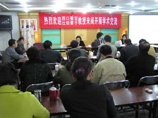 交流會上,首先由西口敏宏教授做《超越世界的社會網絡和中國溫州的巨變》的報告,以溫州巨變為例對規則網絡與小世界網絡進行了詳細的講解與闡述,并對如何利用小世界網絡研究當前的移民問題做了探討。辻田教授介紹日本的中國福建省勞動移民情況(以福清為例),通過一系列詳實的數據顯示了旅日閩僑的一些基本狀況,并提到,當前日本老齡化嚴重,如何接受外來勞動力的問題在日本已普受關注。