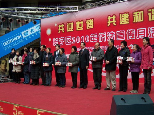 中新網3月12日電 據上海市僑辦消息,近日,由上海市長寧區僑辦、僑聯、長寧區社會主義學院主辦,新涇鎮協辦的2010年“共迎世博,同建和諧”長寧區僑法宣傳月主題活動在西郊百聯廣場舉行。