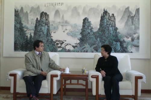 姚迪雄回顧了十多年來與國務院僑辦的密切交往,對僑辦多次支持其在華舉辦大型巡回畫展表示衷心感謝。他向李海峰贈送了畫作《天馬圖》,并簡要介紹了將于4月開始在國內山東、內蒙古和甘肅等省(區)舉辦其個人巡回畫展的情況。