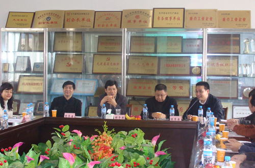 中新網4月27日電 據湖州市僑聯消息,近日,浙江省湖州市僑聯、市僑商會在長興召開“僑資企業轉變經濟發展方式現場交流會”,并實地參觀考察努奧羅(中國)有限公司、浙江多蒙佳樂服飾有限公司等兩家僑商會會員企業。長興縣縣長章根明、副縣長吳頻、湖州市僑聯主席孫虎林、副主席黃永南出席會議,二十余家重點僑資企業代表與會。