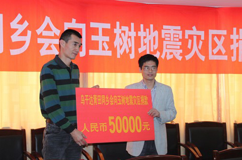 烏干達青田同鄉(xiāng)會成立于2008年5月,是非洲最早的青田同鄉(xiāng)會組織,會員200多人,大多數(shù)人雖然身處在國外,但是心卻始終不離中國。得知玉樹地震災情后,他們紛紛伸出援助之手,向祖(籍)國捐贈了50000元。捐贈儀式上,會長林建代表該會所有會員進行了捐贈。