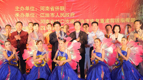 此次演出是在河南省對口援建江油的任務基本完成和由中國僑聯援建的北川中學即將竣工之際,河南省僑聯為了表達對援建、捐建四川地震災區建設者的崇高敬意,組織近50名演員專場慰問演出。四川省僑聯從組織接待、提供用車、制定方案、聯絡協調、勘測場地、組織參觀、安全保障等給予了全方位的配合和支持。綿陽市僑聯、江油外僑辦積極參與,組織有序,使2000多名援建工作者和當地群眾、學生觀看了演出,達到了慰問目的。(趙建中)